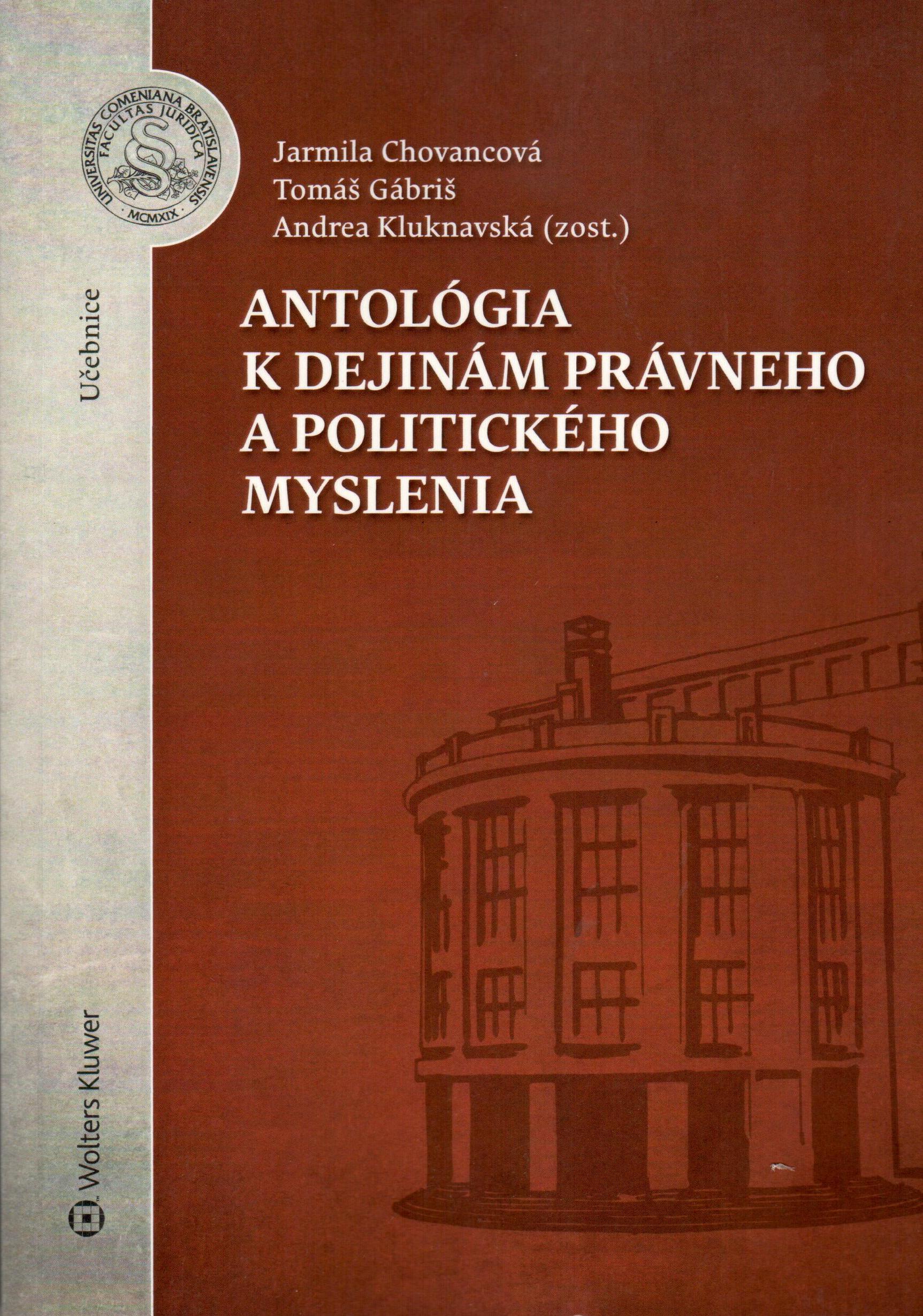 Názov Antológia k dejinám právneho a politického myslenia Aut.údaje Jarmila Chovancová, Tomáš Gábriš, Andrea Kluknavská (zost.) Ďalší autori Chovancová Jarmila (Zostavovateľ / Kompilátor)